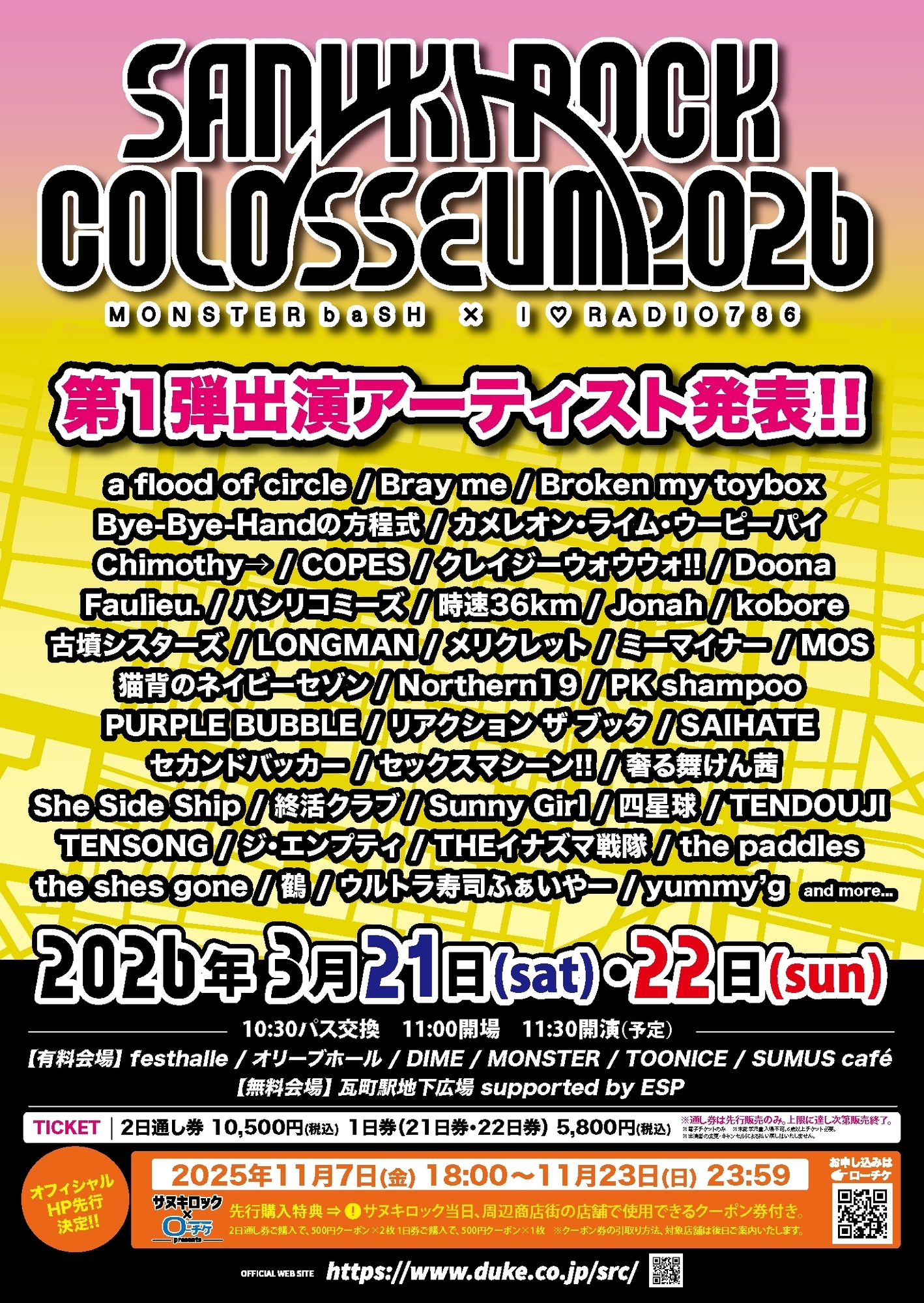 2026年3月21日(土)22日(日)開催 香川県 高松市瓦町周辺『SANUKI ROCK COLOSSEUM 2026 -MONSTER baSH × I♡RADIO 786-』出演決定☆