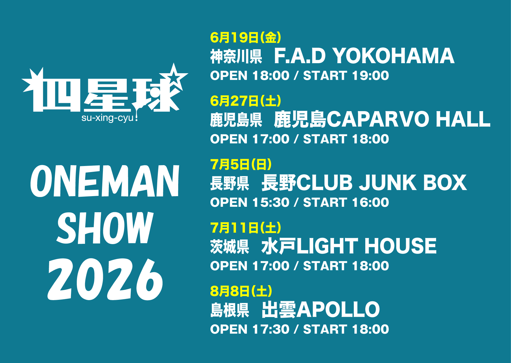 2026年1月12日(月祝)仙台『四星球企画 毛が生えた日』・6月19日(金)横浜・27日(土)鹿児島・7月5日(日)長野・11日(土)水戸・8月8日(土)出雲『四星球ワンマンツアー』開催決定☆