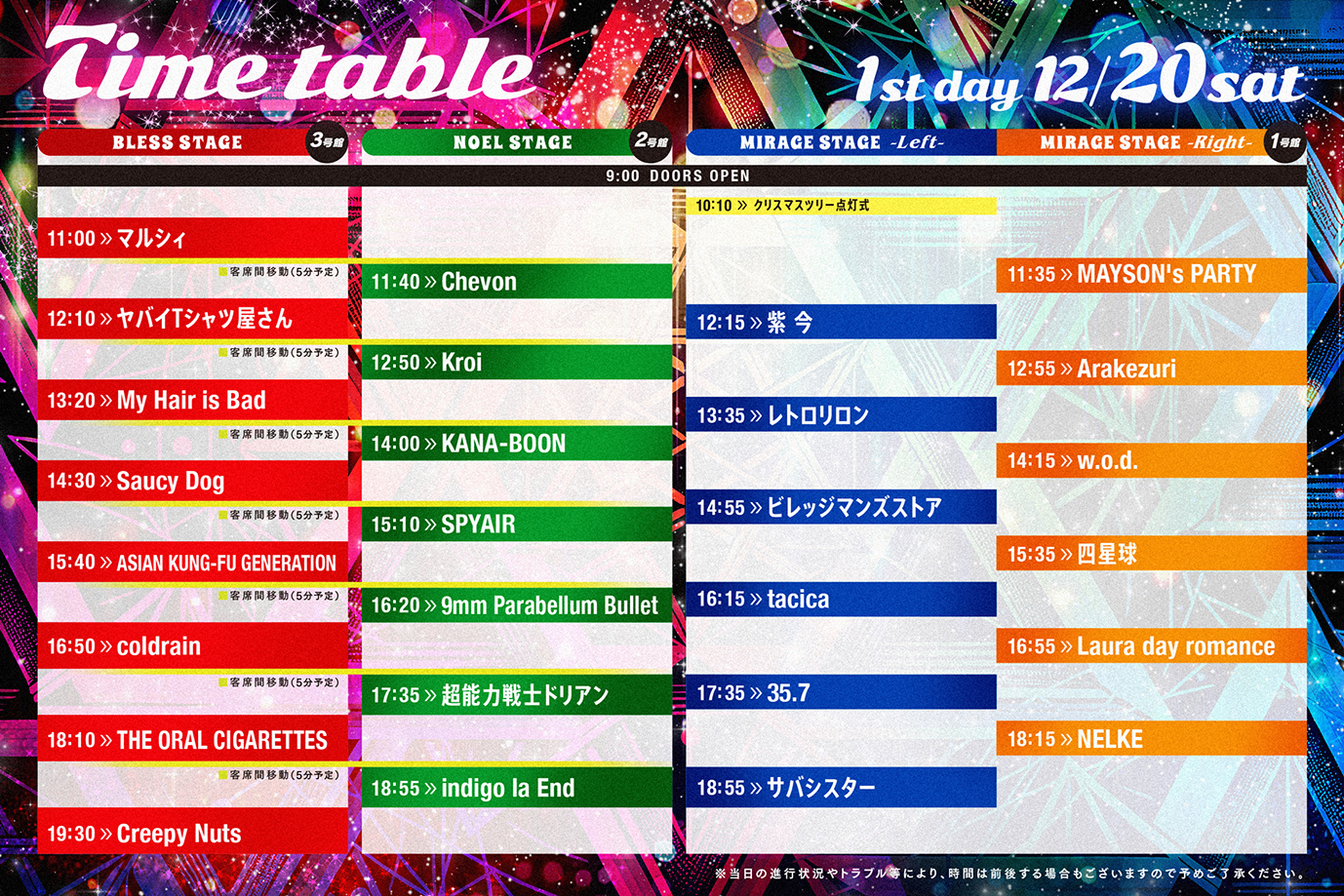 Arakezuri / サバシスター / 35.7 / 四星球 / tacica / w.o.d. / NELKE / ビレッジマンズストア / 紫 今 / MAYSON's PARTY / レトロリロン / Laura day romance
