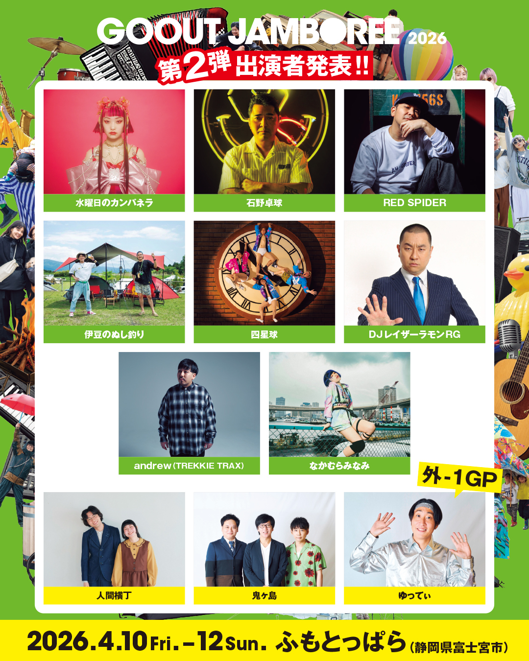 2026年4月10日(金)11日(土)12日(日)開催 静岡県 ふもとっぱら(メイン会場)『GO OUT JAMBOREE 2026』出演決定☆