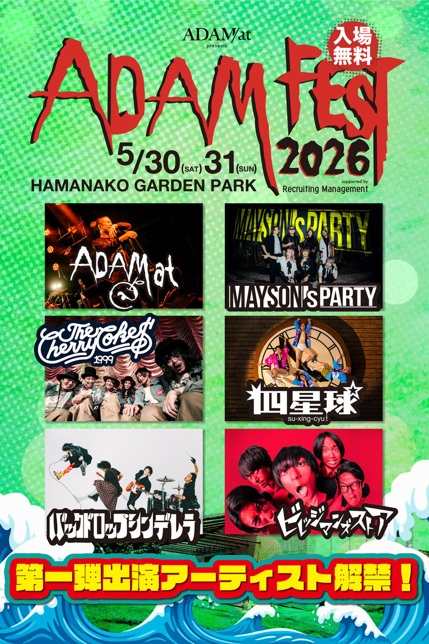 2026年5月30日(土)31日(日)開催 静岡県 浜名湖ガーデンパーク屋外ステージ『ADAM at pre. 「ADAM FEST2026」』出演決定☆