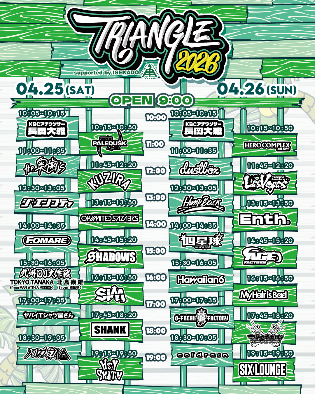 Age Factory / ENTH / coldrain / G-FREAK FACTORY / SIX LOUNGE / 四星球 / dustbox / HAWAIIAN6 / Hump Back / HERO COMPLEX / Fear, and Loathing in Las Vegas / My Hair is Bad / マキシマム ザ ホルモン / 【MC】KBCアナウンサー 長岡大雅