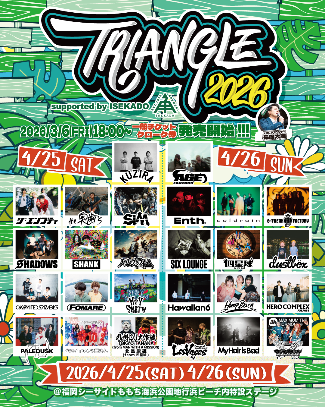 2026年4月25日(土)26日(日)開催 福岡県 シーサイドももち海浜公園地行浜ビーチ内特設ステージ『TRIANGLE 2026』タイムテーブル発表!