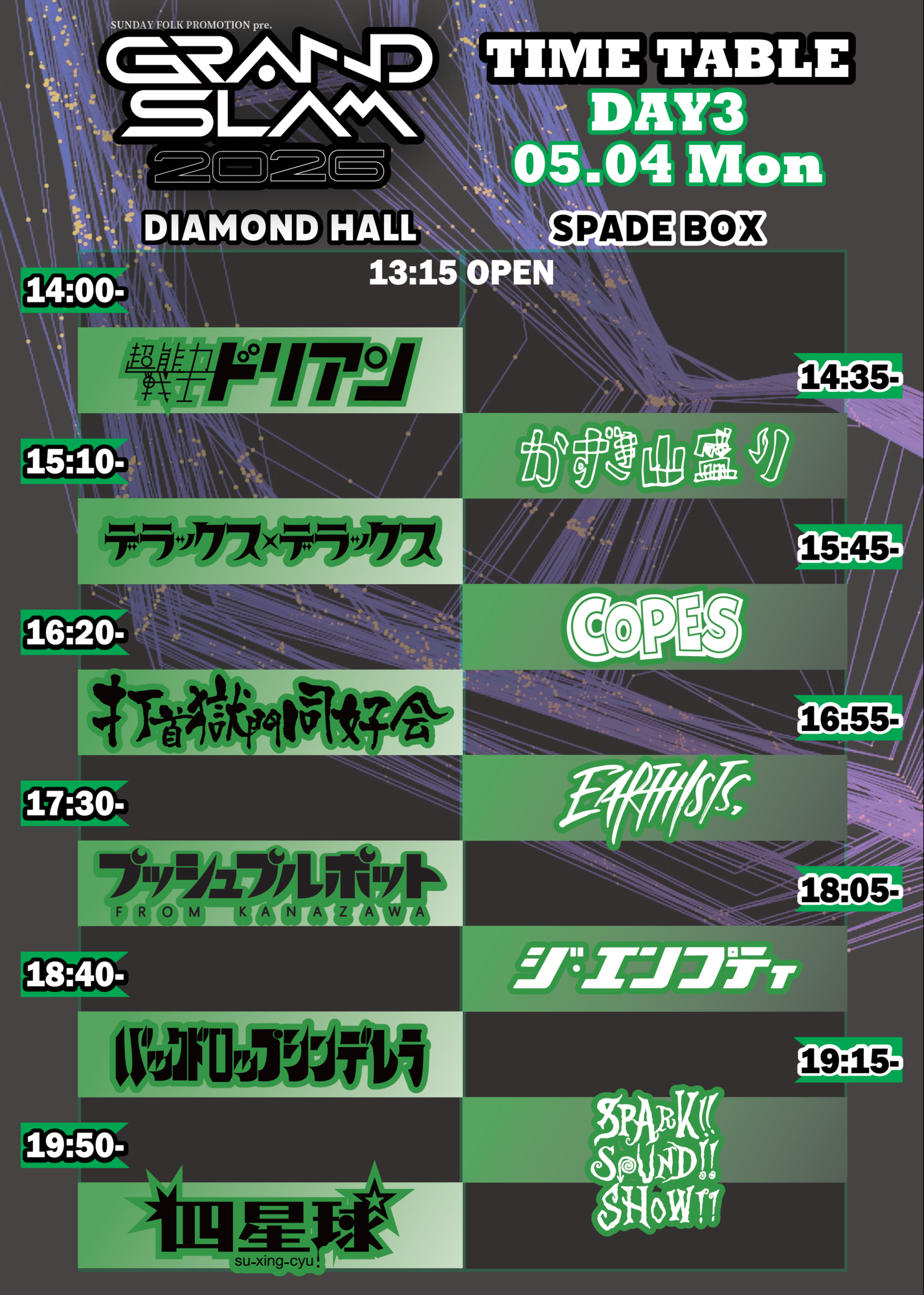 2026年5月2日(土)3日(日)4日(月祝)5日(火祝)開催 愛知県 名古屋 DIAMOND HALL & SPADE BOX(2会場同時開催)『GRAND SLAM 2026』タイムテーブル発表☆
