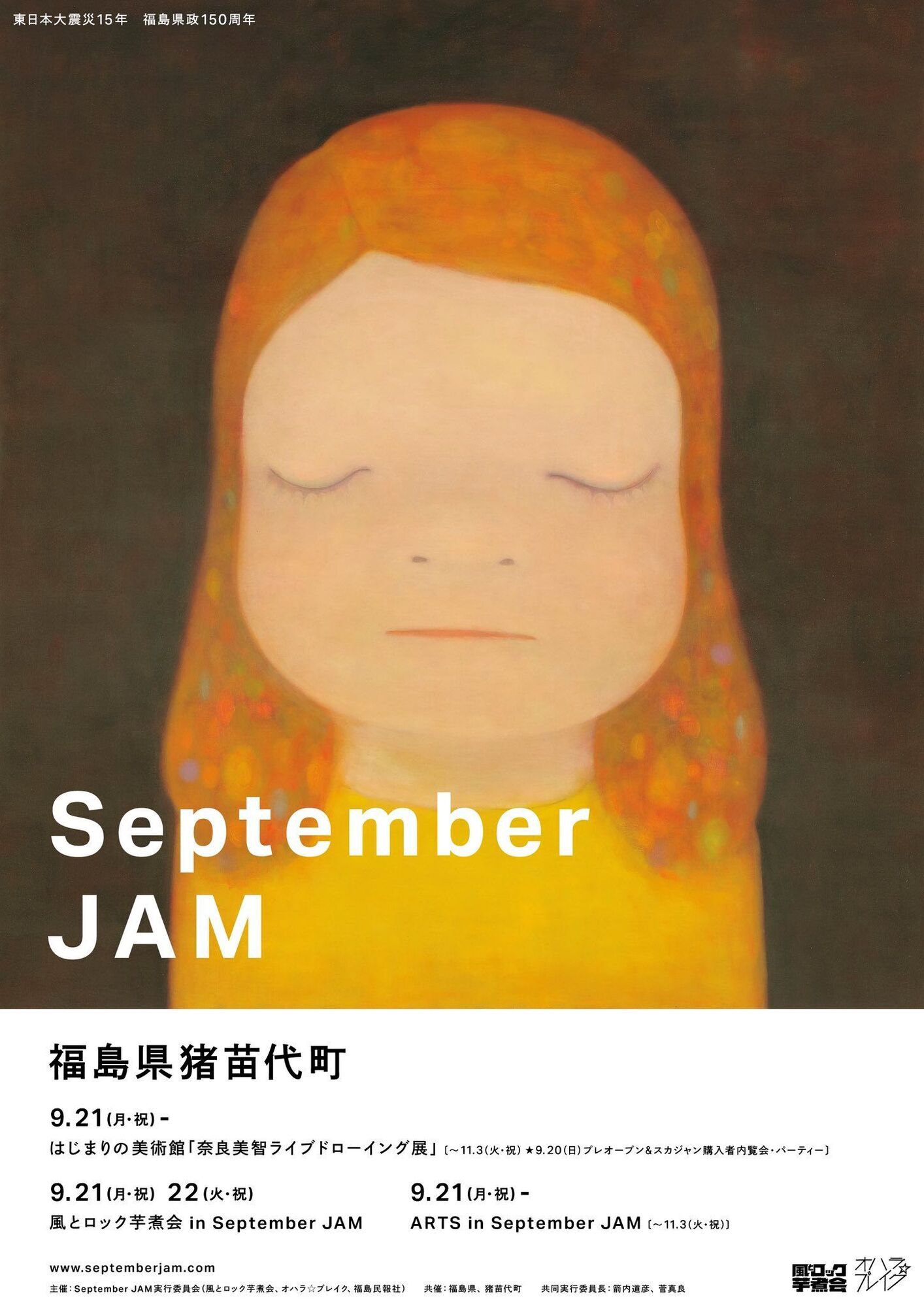 風とロック芋煮会 in September JAM 2日券の超先行手売りと、奈良美智の絵が刺繍された「September JAM オリジナルリバーシブルスカジャン」の超先行受注が、4月25日(土)26日(日)宮城県で開催されるARABAKI ROCK FEST.26会場 タワーレコードブースで行われる。