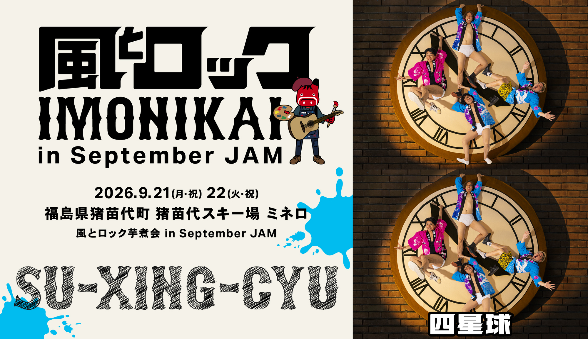 2026年9月21日(月・祝)22日(火・祝)開催 福島県猪苗代町 猪苗代スキー場ミネロ『風とロック芋煮会 in September JAM』出演決定☆