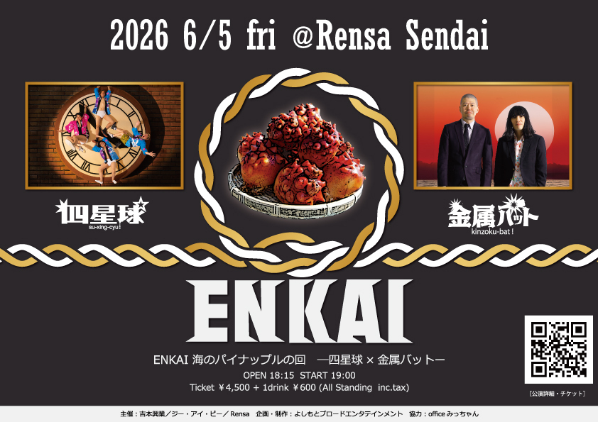 2026年6月5日(金)宮城県 仙台Rensa『ENKAI 海のパイナップルの回₋四星球×金属バット₋』出演決定☆