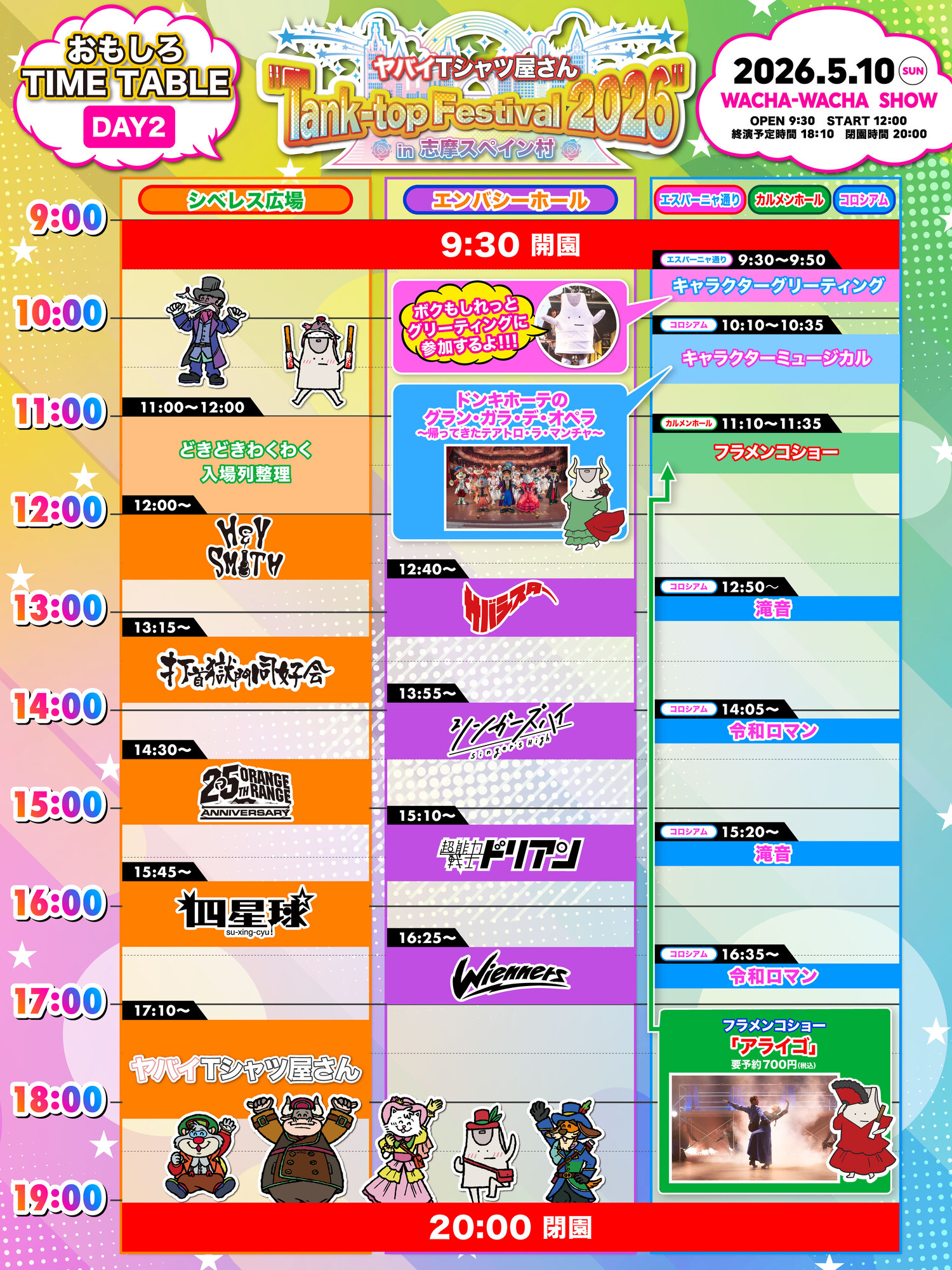 2026年5月9日(土)10日(日)開催 三重県志摩市 志摩スペイン村パルケエスパーニャ『ヤバイTシャツ屋さん "Tank-top Festival 2026" in 志摩スペイン村』タイムテーブル発表☆